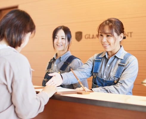 グランピング施設では、コンシェルジュとしてお客様が快適で特別な時間を過ごしていただけるようなサポートを行います。スキー場では、お客様に全力で楽しんでいただけるようにチケットやグッズの販売、レンタルの受付・貸し出しなどを行います。